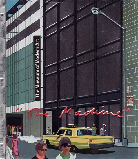 1968: Schönster Katalog des Museum of Modern Art The machine as seen at the end of the mechanical age. / K. G. Pontus Hultén. The MUSEUM OF MODERN ART. – New York: The Museum of Modern Art 1968. – Gr.8°. [2], 216, [2] S. mit Abb. Aluminiumblech-Einband mit farbigem Prägedruck. Der Einband aus Aluminiumblech zeigt in farbigem Prägedruck den Eingang zum Museum of Modern Art in der 11 West 53rd Street in New York. Menschen kommen und gehen. Ein gelbes Taxi wartet unter einer Strassenlaterne auf Kundschaft. Eine geheimnisvolle weisse Wolke hängt noch in der Luft... - Die Ausstellung mit Werken von Etienne-Jules Marey, Frères Lumière, Eadweard Muybridge, Jacques Henri Lartigue, Marcel Duchamp, Man Ray, Lszlo Moholy-Nagy, Hans Bellmer, Jean Tinguely, Ed van der Elsken usw. wurde nach New York auch noch in Huston und San Francisco gezeigt. Photobibliothek.ch 12002
