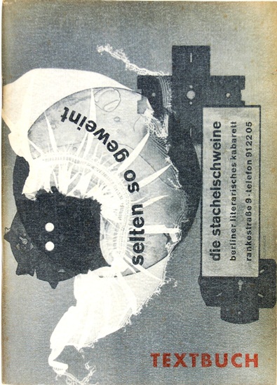 1962: Programmheft Die Stachelschweine. Textbuch des 30. Programms «selten so geweint». Probenbeginn: 15. Oktober 1962. 1. Vorstellung: 10. November 1962. / Von Rolf Ulrich und Wolfgang Gruner. Textbeitrag: Detlev Brewster. Titelentwurf [für das Photogrammheft]: Heinz HAJEK-HALKE. – Berlin: Die Stachelschweine 1962. – 8°. 67, [1] S., [4] S. Programm lose beiliegend. Br. Photobibliothek.ch 9637