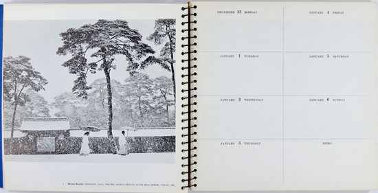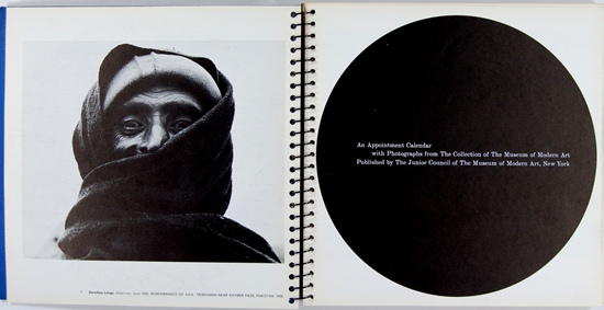 1963/1965: Luxuriöse Agenda 1963. An Appointment Calendar with Photographs from the Collection of The MUSEUM OF MODERN ART. – New York: The Junior Council of The Museum of Modern Art o.J. [1962]. – 8°. [112] S., pro Woche eine Photographie. Krt. mit Spiralbindung. Photobibliothek.ch 10190