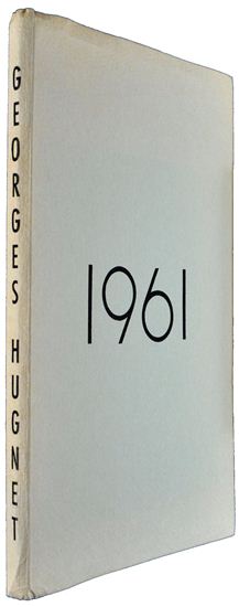 Ende «Die DDR im Photobuch» 1961: Surrealistische Jahreszahl 1961. Illustré de quatre photomontages. / Georges HUGNET. – 500 exemplaires sur Vélin, illustré de quatre photomontages, numérotés de 1 à 500. Exemplaire 472. – Paris: Chez l'auteur 1961. – Gr.8°. 60, [7] S. mit 4 Lichtdrucken, 1 Bl. Errata. Krt. SU. Die Jahreszahl «1961» liest sich auf den Kopf gestellt ebenfalls «1961». Zuvor war dies bereits 1001, 1111, 1691 und 1881 der Fall gewesen. Das surrealistische Phänomen tritt erst wieder im Jahr 6009 auf! - Georges Hugnet (1906-1974) war ein surrealistischer Schriftsteller, Photograph und Filmemacher. In den 1930er Jahren war er Mitglied der Surrealisten um André Breton. Photobibliothek.ch 13337