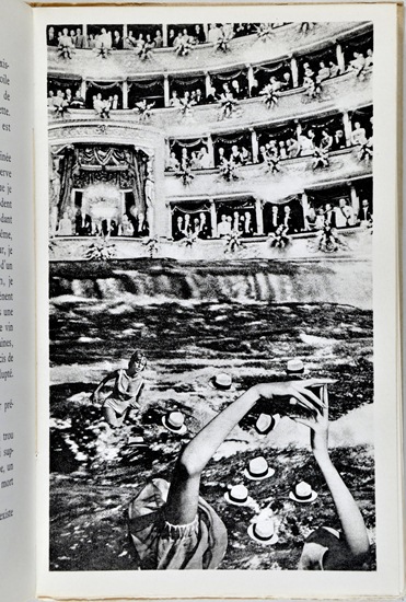 1969: Surrealistische Subskription Huit jours à Trébaumec. / Journal de vacances de Georges HUGNET orné de 82 photographies prise par l'auteur en 1947. – Bulletin de souscription. – Paris: Henri Mercher à paraître le 5 Juin 1969. – 8°. [4] S. mit einer Doppelseite des angekündigten Werkes. Subskription für das berühmte surrealistische Werk mit schöner Doppelseite, eine Dame mit Eichhörnchen auf dem Hintern darstellend. Photobibliothek.ch 12720