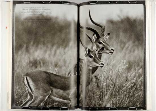 ——— Longing for Darkness (1975) Longing for Darkness. / Kamante's Tales from Out of Africa. With original photographs (January 1914 - July 1931) and quotations from Isak Dinesen ([d.i.] Karen Blixen). Collected by Peter [Hill] BEARD. Layout and Design: Peter [Hill] Beard and Marvin Israel. – First edition. – New York: Harcourt Brace Javanovich 1975. – 4°. [264] S. mit Abb. Pappband illustriert. SU. Kamante, der Held von Karen Blixens «Out of Africa» erzählt hier seine Version der Geschichte. Der Text wurde von den Söhnen Kamantes aus dem Swahili übersetzt und von Hand aufgeschrieben. Praktisch das ganze Buch ist handschriftlich, auch das Nachwort von Jacqueline Bouvier Onassis (Jacky Kennedy). Die historischen Photos, weitgehend von Karen Blixen stammend, werden ergänzt durch neue Aufnahmen von Beard. Photobibliothek.ch 13920