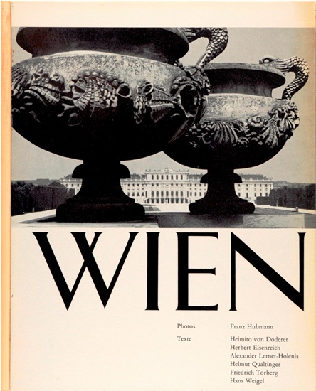 1963: Über die Wiener Wien. Vorstadt Europas. / Photos: Franz HUBMANN. Texte: Alexander Lernet-Holenia, Helmut Qualtinger [u.a.]. – Lizenzausgabe. – Zürich: Ex Libris 1963. – 4°. Ungez. S. mit 128 Tdr.-Abb. Halbkunstlederband illustriert. Originalausgabe 1963 bei Artemis Zürich. Ref.: Ponstingl, Wien im Bild, 2008, Nr. 82, S. 95-97 (mit Abb.). Photobibliothek.ch 13884
