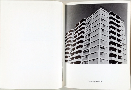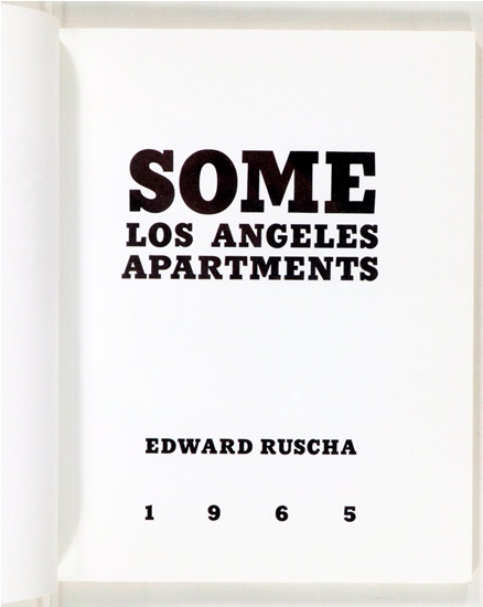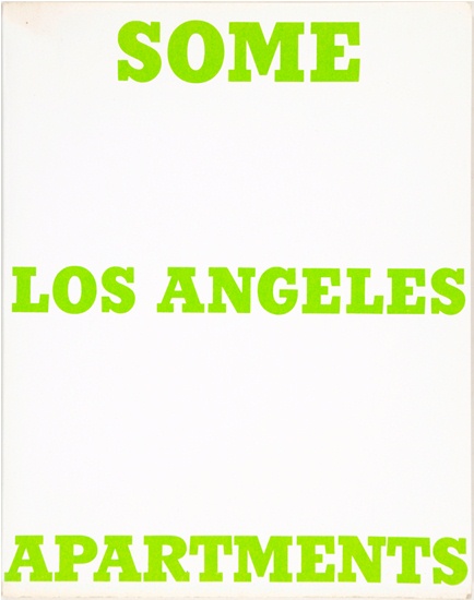 ——— Some Los Angeles Apartments (1965) Some Los Angeles Apartments. / Edward RUSCHA. – Second edition, 3000 copies. – Los Angeles: Printed by Anderson, Ritchie & Simon 1965/1970. – Kl.8°. [48] S. mit [34] Abb. Kartonage. Original Pergamin-Schutzumschlag. «Some Los Angeles Apartments» war das dritte Künstlerbuch von Edward Ruscha. Ref.: Parr/Badger, The Photobook, volume II, S.140/141. The Open Book, S. 198-201. Zustand: Pergamin-Schutzumschlag mit kleinen Einrissen und Preisetikette. Photobibliothek.ch 14906