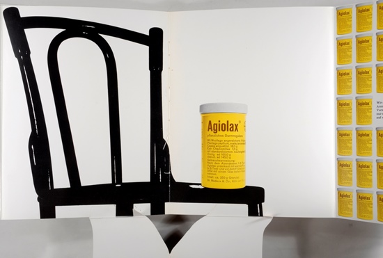 ...darunter erscheint eine Büchse des Stuhlgang-Regulans «Agiolax» (16) 1969/1970: «East 100st Street» East 100th Street. / Photographs by Bruce DAVIDSON. – [Softcover Erstausgabe.] – Cambridge, Massachsetts: Harvard University Press 1970. – 4°. 128 S. mit Duotone-Abb. Krt. ill. Die East 100th Street führt vom Central Park zum East River. Ein Grossteil der Photos von Bruce Davidson (geboren 1933) wurden zuerst in der Ausgabe des «Du» vom März 1969 publiziert. Der Text von Bruce Davidson im «Du» ist auch viel umfangreicher. Beispielsweise erzählt er von einem Restaurantbesitzer, der sich beschwerte: «Sie machen alle Leute hier herum zu dunkel. Wenn Sie helle Bilder machen, dann will ich Ihre Bilder an die Wand hängen.» Was der Mann meinte, wird erst klar, wenn man die Bilder im «Du» mit den Bildern im Buch vergleicht: die Bilder im Buch sind schon sehr dunkel, wie man es sonst nur von Paul Strand kennt. Ref.: Tippit, 100 Important 20th-Century Photobooks, Nr. 24. Roth, The Book of 101 Books, S. 196/197. Parr/Badger, The Photobook, volume II, S. 18. The Open Book, S. 260/261. – Zustand: Rechte untere Ecke etwas wasserwellig (Bilder nicht betroffen) Photobibliothek.ch 12693