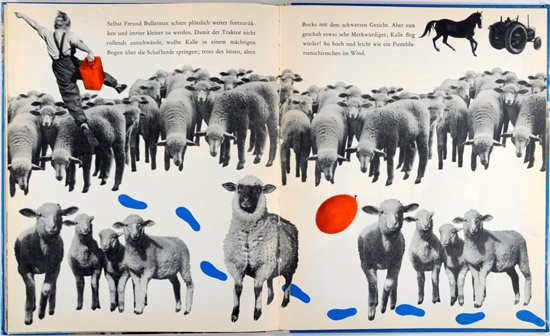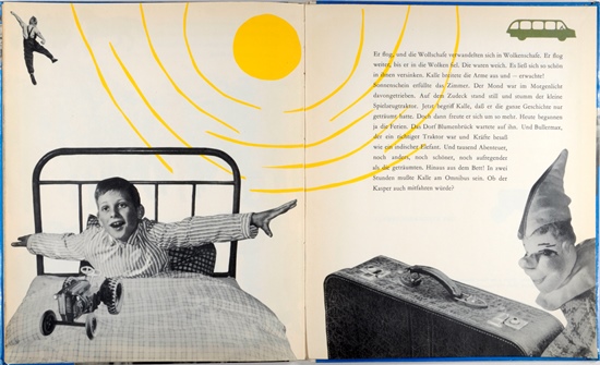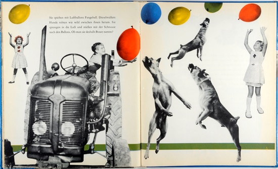 Edith Rimkus und Horst Beseler Edith Rimkus (1926-2016) und Horst Beseler (geboren 1925) gehören heute zu den bekannteren Photographen und Autoren der DDR. Noch vor Ed van der Elskens «Liebe in Saint Germain des Prés» (1962) brachten sie mit «Verliebt in Berlin» (1958) einen Städteband zum Thema «Liebe» heraus. Das Kinderbuch «Bullermax» (1964) ist heute eines der gesuchtesten DDR-Photobücher (spätestens seit der Ausstellung im Kasseler Fotoforum von 2016). Auch wenn der Film und das Kinderbuch «Le Ballon rouge» (1956) von Albert Lamorisse unschwer als Vorbild erkennbar ist, sind die Photomontagen doch etwas Neues (bei Lamorisse handelt es sich um Standbilder aus dem gleichnamigen Film). ——— Verliebt in Berlin (1958) Verliebt in Berlin. Ein Tagebuch in Bildern und Worten. / Edith RIMKUS ; Horst Beseler. – Erste Auflage. – Berlin [Ost]: Verlag Neues Leben 1958. – 4°. 211, [1] S. Ganzleinenband. SU. Photobibliothek.ch 16735