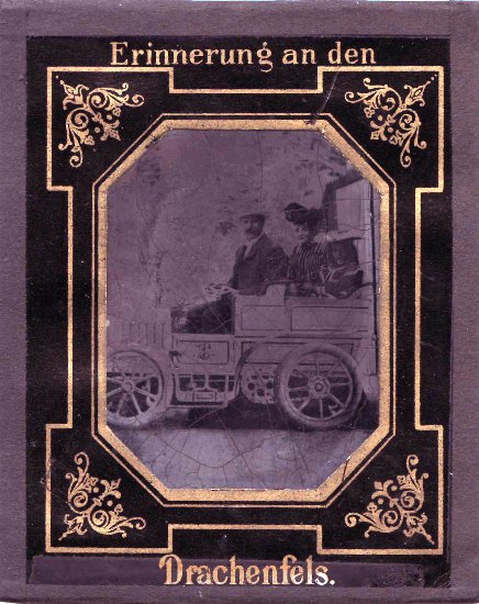 Ferrotypie aus einem Bosco-Automaten. Der Jugendstil-Rahmen diente auch noch einen anderen Zwecke: durch die hochgebogenen Ränder war die Photographie nämlich ihre eigene Entwicklungs- und Fixierschale. Mit einer minimalem Menge an photographischen Bädern konnte die Photographie so in 3 Minuten entwickelt, fixiert und gewässert werden. (Photobibliothek.ch 12873)