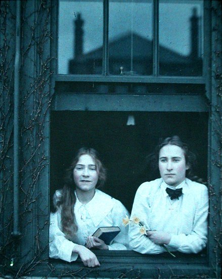 Zwei Mädchen, Farbrasterplatte «Autochrome», ca. 1915