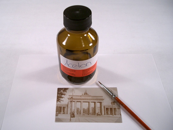 Einfachstes Merkmal für Celloidin-Silber-Prints ist die Aceton-Probe