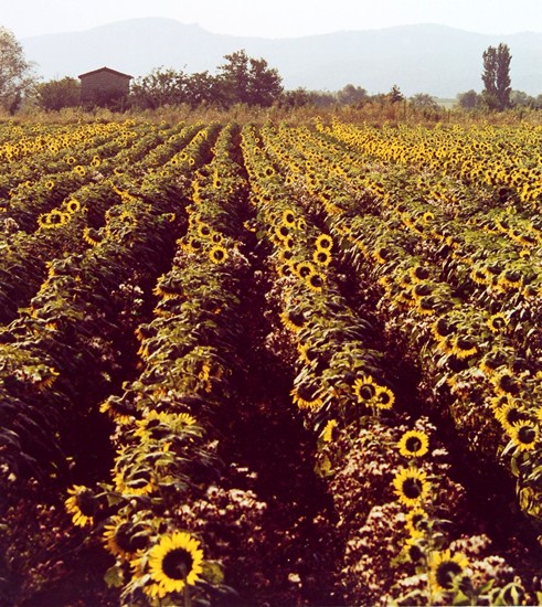 Sonnenblumenfeld zwischen Aubenas und Alès, Kodak Ektaflex PCT, 1982