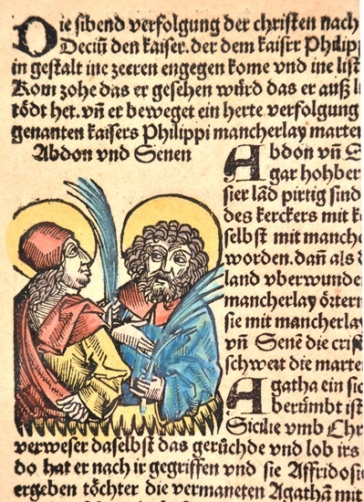 Hartmann Schedel, Das buch der Cronicken und gedechtnus wirdigern geschichte, Bleisatz mit handkoloriertem Holzschnitt, 1493
