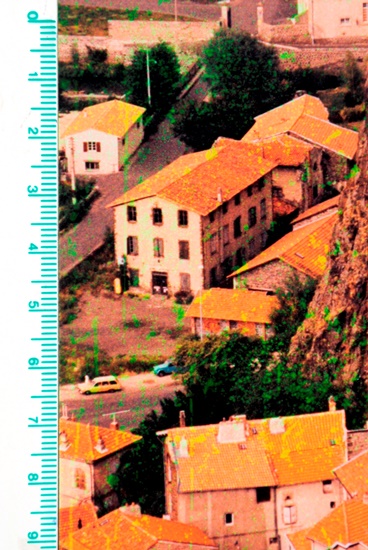 Aus Rotenburg, Gummidruck, 1912 In der Vergrösserung sind deutlich 3 Schichten erkennbar HELIOGRAPHIE (1826) Andere Bezeichnungen: Héliographie (f), Niepcotypie Verfahren: Direkt-Positiv (Unikat) Geschichte: Erstes photographisches Verfahren, erfunden durch Nicéphore Niépce. 1816: Erste Versuche mit Salzpapier. 1827: «Point de vue du Gras», einzige erhaltene Heliographie (Asphalt auf Zinnplatte). 1829: Beschreibung für Daguerre in «Notice sur Héliograpie» (Asphalt auf versilberter Kupferplatte). Beschrieb gemäss «Notice sur Héliograpie» von 1829: Beschichtung einer versilberten Kupferplatte mit Asphalt, dem sogenannten «Judenpech». Das ist ein Erdpech, das im Toten Meer in Brocken an die Wasseroberfläche aufsteigt und dann am Ufer eingesammelt werden kann. Das pulverisierte Judenpech wird in Lavendelöl aufgelöst und damit die Platte beschichtet. Da das Judenpech unter Lichteinwirkung aushärtet, kann das Bild nach der Belichtung in Lavendelöl und Petrol (1:6) «entwickelt» werden. Danach werden die Schatten mit Joddämpfen gefärbt, und nach dem Waschen in Alkokol wird das Bild als Positiv sichtbar. Merkmale: Lichter = Silber. Schatten = rotbraune Verfärbung durch Jod. Referenzen: Marignier, Héliographies, Musée Niépce, 1989.