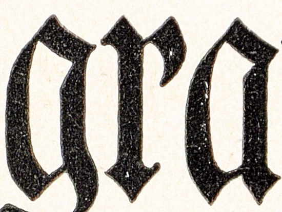 In der Vergrösserung kann man, neben dem schwarzen, einen FARBLICHTDRUCK (1880-1900) Verfahren: Flachdruck Geschichte: 1878 durch Joseph Albert entwickeltes Farbdruckverfahren. Beschrieb: Übereinander gedruckte verschiedenfarbige Lichtdruckplatten. Merkmale: Typisches Lichtdruck-Runzelkorn. Referenzen: Heidtmann, Wie das Photo ins Buch kam, 1984, S. 639-645.