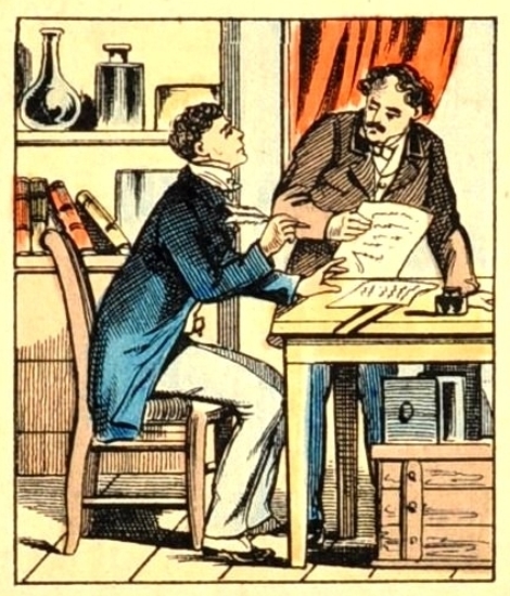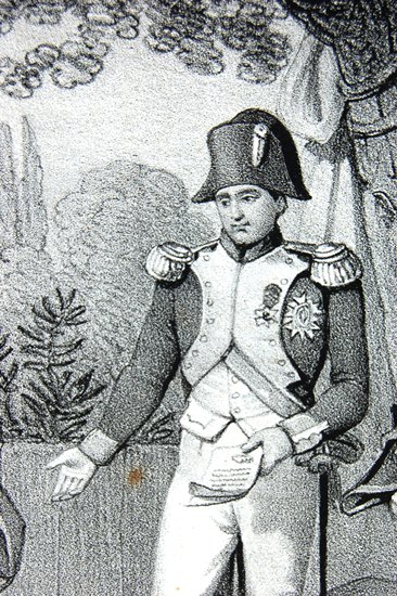 Begnadigung des Herzogs von St. Simon durch Napoleon, Kreidelithographie, ca. 1850, Ausschnitt im Original 7,5 x 5 cm ——— Federlithographie Andere Bezeichnungen: Lithographie à la plume (f), litho pen drawing (e) Verfahren: Flachdruck Geschichte: 1797 durch Alois Senefelder erfunden. Beschrieb: Die Zeichnung wird mit lithographischer Tusche auf den glatten Stein aufgetragen. Nach der Präparierung und Befeuchtung des Steines nehmen nur die fettigen Stellen die Druckfarbe an, während die feuchten Stellen diese abstossen. Merkmale: Absolut gleichmässiger Farbauftrag. Fehlen der Hochdruckmerkmale (Quetschrand, Schattierung). Fehlen der Tiefdruckmerkmale (erhöhtes Farbbild, Druckrand). Referenzen: Senefelder, Lehrbuch, Neuaufl., 1925, S. 248-272. Van der Linden, Handbuch der grafischen Techniken, 2. Aufl., 1986, S. 182. Winkler, Wie sammle ich Lithographien? 1965.