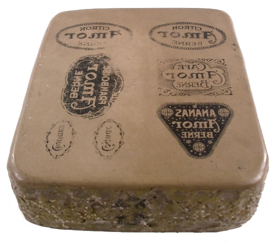Lithographie-Stein zum Druck von 7 Pralinée-Papieren, ca. 1950 ——— Kreidelithographie Andere Bezeichnungen: Lithographie au crayon (f), litho chalk drawing (e) Verfahren: Flachdruck Geschichte: 1797 durch Alois Senefelder erfunden. Wichtiges Illustrationsverfahren in der zweiten Hälfte des 19. Jahrhunderts (z.B. Daumier). Beschrieb: Die Zeichnung wird mit lithographischer Kreide auf den gekörnten Stein aufgetragen. Nach der Präparierung und Befeuchtung des Steines nehmen nur die fettigen Stellen die Druckfarbe an, während die feuchten Stellen diese abstossen. Merkmale: Kreideartiger Strich, entsprechend der Körnung des Steins. Fehlen der Hochdruckmerkmale (Quetschrand, Schattierung). Fehlen der Tiefdruckmerkmale (erhöhtes Farbbild, Druckrand). Referenzen: Senefelder, Lehrbuch, Neuaufl., 1925, S. 272-296. Van der Linden, Handbuch der grafischen Techniken, 2. Aufl., 1986, S. 181/182. Winkler, Wie sammle ich Lithographien? 1965.