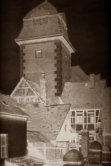Florenz, Campanile del Giotto, Duomo Santa Maria del Fiore, ca. 1955, Salzpapierabzug ab einem Kollodiumnegativ ——— Beschriftung von Salzpapier- und Albuminabzügen Bei Kalotypien ist die Schrift immer weiss, da das Papiernegativ problemlos mit Bleistift oder Tinte beschriftet werden konnte; Beschriftungen von Kalotypien sind unscharf und oft kaum mehr lesbar (hier «9. Aug. 1843»)