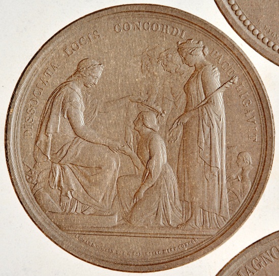 M. Auer, Londoner Weltausstellungs-Münzen von 1851, Stahlstich mit einer Reliefkopiermaschine hergestellt, ca. 1857
