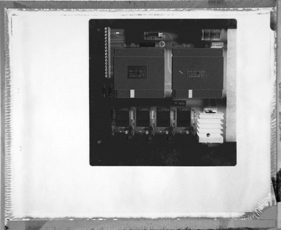 Der Filmtyp 665 lieferte hochwertige Negative und wurde von Ansel Adams propagiert. Das Negativ ist 85 x 104 mm gross. Es wurde 1984 in einer Hasselblad-Kamera belichtet. Charakteristisch ist für diese Negative der Bildrand, der von namhaften Photographen absichtlich nicht beschnitten wurde, um so der Aufnahme einen speziellen «Rahmen» zu geben. ——— Polaroid-Monoblattverfahren (1974-2008) Verfahren: Sofortbild Geschichte: 1947 durch Edwin H. Land erfunden. Zusätzlich zu verschiedenen Trennblattverfahren kam 1974 mit Polaroid SX-70 das erste Monoblattverfahren auf den Markt. Beschrieb: Silber bzw. Farbstoffe diffundieren in eine Empfängerschicht. Da Belichtung und Betrachtung von der gleichen Seite erfolgen, ist ein Umkehrspiegel im Strahlengang erforderlich. Merkmale: Chemietaschen am unteren Bildrand. Alle bis 1981 hergestellten SX-70-Kameras verwendeten die gleichen SX-70-Kassetten mit integrierter Batterie. Kameras ab 1982 wurden auf den neuen 600er Film ausgelegt. Beide Kassetten sind identisch aufgebaut, nur der 600er Film ist unterschiedlich und hat eine wesentlich höhere Empfindlichkeit. Deshalb konnten 600er Kassetten auch in alten SX-70-Kameras eingesetzt werden, wenn die höhere Empfindlichkeit durch einen entsprechenden Graufilter kompensiert wurde. Für die neue Generation Polaroid Image-Kameras (in USA «Spectra») gab es dann eine grössere Kassette mit einem grösseren, leicht längsformatigen Bild. Formate (Höhe x Breite, ± 1 mm) und Filmempfindlichkeit: Referenzen: Museum Folkwang, Verfahren der Fotografie, 1989, S. 80.