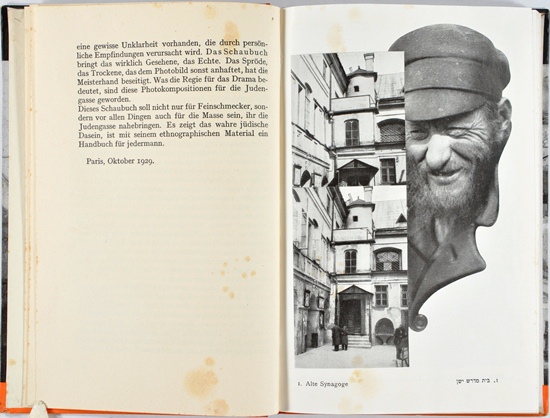 Band 30 Das Gesicht des Tieres. / 65 Bilder eingeleitet und erläutert von Adolf KOELSCH. – Zürich u. Leipzig: Orell Füssli 1931. – 8°. 16 S. Text, 64 S. Abb., [16] S. Schaubücher-Werbung. Hln. – (Schaubücher ; 30) Photos von Hedda Walther, Albert Renger-Patzsch u.a. Ref.: HBK 09748. Photobibliothek.ch 10500 Band 31 Der männliche Körper. / 59 Bilder eingeleitet von Emil SCHAEFFER, erläutert von Eugen Matthias. – Zürich u. Leipzig: Orell Füssli 1931. – 8°. 16 S. Text, ungez. S. mit 58 Abb. Hln. – (Schaubücher ; 31) Photos von H. Freter, Zürich. Ref.: HBK 05821. Photobibliothek.ch 10501 Band 32 Goethe und Goethestätten. / 88 Bilder eingeleitet von Rud[olf] Pechel. – Zürich u. Leipzig: Orell Füssli 1932. – Gr.8°quer. 16 S. Text, 56 S. mit [88] Abb., [8] S. Schaubücher-Werbung. Hln. – (Schaubücher ; 32) Photobibliothek.ch 10502 Band 33 Hollywood wie es wirklich ist. / 61 Bilder eingeleitet und erläutert von Erwin DEBRIES. – Zürich u. Leipzig: Orell Füssli 1930. – 8°. 16 S. Text, ungez. S. mit 60 Abb. Hln. – (Schaubücher ; 33) Ref.: HBK 09615. TL 217. Photobibliothek.ch 10503 Band 34 «Wolfgang Amadeus Mozart» ist nie erschienen. Band 35 «Das Ozeanschiff» ist nie erschienen. Band 36 Im Zeppelin über der Schweiz. / 55 Bilder eingeleitet von Hans von Schiller. Bilder von Ernst Erwin HABERKORN. – Zürich u. Leipzig: Orell Füssli 1930. – 8°. 16 S. Text, ungez. S. mit 55 Abb. Hln. – (Schaubücher ; 36) Ref.: HBK 07041. Photobibliothek.ch 10504 Band 37 Richard Wagner und Bayreuth. / 84 Bilder eingeleitet von Oscar BIE. – Zürich u. Leipzig: Orell Füssli 1931. – Gr.8°. 16 S. Text, ungez. S. mit 81 Abb., [8] S. Schaubücher-Werbung. Hln. – (Schaubücher ; 37) Photobibliothek.ch 10505 Band 38 Davos, die Sonnenstadt im Hochgebirge. / 82 Bilder eingeleitet von Kasimir EDSCHMID. – Zürich u. Leipzig: Orell Füssli 1932. – Gr.8°. 16 S. Text, ungez. S. mit 82 Abb., [8] S. Schaubücher-Werbung. Hln. – (Schaubücher ; 38) Photos von Emil Meerkämper, Gotthard Schuh, Albert Steiner u.a. - Band 38 war ursprünglich als «Drei grosse Filmkomiker» angekündig, dieser Titel ist jedoch nie erschienen. Photobibliothek.ch 10506 Band 39 Durchleuchtete Körper. / 81 Bilder eingeleitet und erläutert von Karl DÖHMANN. – Zürich u. Leipzig: Orell Füssli 1931. – Gr.8°. 16 S. Text, ungez. S. mit 81 Abb., [8] S. Schaubücher-Werbung. Hln. – (Schaubücher ; 39) Ref.: HBK 09937. Photobibliothek.ch 10507 Band 40 Der Rhein von den Alpen bis zum Meere. / 67 Bilder eingeleitet von H[ermann] v[on] WEDDERKOP, erläutert von Emil Schaeffer. – Zürich u. Leipzig: Orell Füssli 1931. – 8°. 20 S. Text, ungez. S. mit 67 Abb. Hln. – (Schaubücher ; 40) Ref.: HBK 08023. Photobibliothek.ch 10508 Band 41 Do X, das grösste Flugschiff der Welt. / 73 Bilder eingeleitet von Claudius DORNIER, erläutert von Erich Tilgenkamp. – Zürich u. Leipzig: Orell Füssli 1931. – Gr.8°. 16 S. Text, ungez. S. mit 72 Abb. Krt. SU. – (Schaubücher ; 41) Ref.: HBK2 12421. Photobibliothek.ch 10509 Band 42 «Istanbul» ist nie erschienen. Band 43 Der Reichstag tritt zusammen. / 72 Bilder eingeleitet von Paul KIRSCHNER. – Zürich u. Leipzig: Orell Füssli 1931. – Gr.8°. 72 S. mit 72 Abb., [8] S. Schaubücher-Werbung. Hln. SU. – (Schaubücher ; 43) Ref.: Nicht bei HBK. Photobibliothek.ch 10510 Buchgestaltung am Beispiel von «Ein Ghetto im Osten (Wilna)»