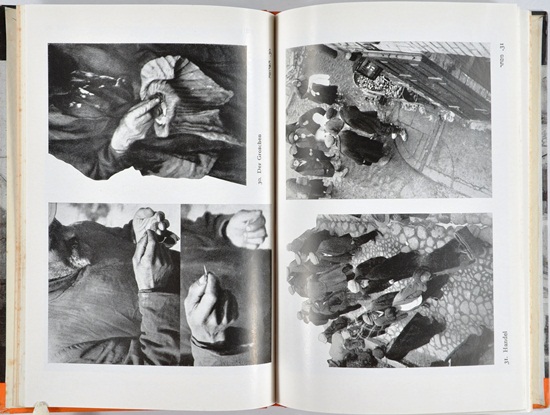 Band 23 Das letzte Gesicht. / 76 Bilder eingeleitet von Egon FRIEDELL. – Zürich u. Leipzig: Orell Füssli 1929 – 8°. 20 S. Text, 68 S. Abb. Hln. – (Schaubücher ; 23) Ref.: HBK 07359. Photobibliothek.ch 10493 Band 24 Franz Schubert und sein Kreis. / 68 Bilder eingeleitet von Felix WEINGARTNER. – Zürich u. Leipzig: Orell Füssli 1929. – 8°. 24 S. Text, ungez. S. mit 68 Abb. Hln. – (Schaubücher ; 24) Photobibliothek.ch 10494 Band 25 Hunderassen - Rassenhunde. / 89 Bilder eingeleitet von [Theodor] KNOTTNERUS-MEYER. – 2. Auflage, 7.-12. Tausend. – Zürich u. Leipzig: Orell Füssli 1929. – 8°. 20 S. Text, ungez. S. mit 89 Abb. Hln. – (Schaubücher ; 25) Ref.: HBK 09744. Photobibliothek.ch 10495 Band 26 «Wochenende» - und was man dazu braucht. / 71 Bilder eingeleitet und erläutert von Adolf BEHNE. – Zürich u. Leipzig: Orell Füssli 1931. – 8°. 16 S. Text, ungez. S. mit 71 Abb., [16] S. Schaubücher-Werbung. Hln. – (Schaubücher ; 26) Photobibliothek.ch 10496 Band 27H Ein Ghetto im Osten (Wilna). [Deutsch/hebräische Ausgabe.] / 65 Bilder von M[oses] VOROBEICHIC. Eingeleitet von S. Chnéour. – Zürich u. Leipzig: Orell Füssli 1931. – 8°. 7, [1] S. deutscher Text, 64 S. Abb. 6, [1] S. hebräischer Text (von hinten paginiert). Hln. – (Schaubücher ; 27H) Seit noch nicht allzu langer Zeit ist bekannt, dass Moses Vorbeichic identisch ist mit Moï Ver, dem Autor von «Paris», welches heute eines der gesuchtesten Photobücher ist. Nach langwieriger Recherche spürten die Sammler Ann und Jürgen Wilde den Photographen, der nun den Namen Moshé Raviv trug, in der israelischen Künstlerkolonie Safed auf. - Sein erstes Buch «Ein Ghetto im Osten» ist deshalb mit Abstand zum gesuchtesten Schaubuch geworden. Davon gibt es drei Ausgaben: 1. die vorliegende deutsch/hebräische Ausgabe; 2. die deutsch/jiddische Ausgabe; 3. die englisch/hebräische Ausgabe «The Ghetto Lane in Wilna». (1) und (2) unterscheiden sich, ausser dem hebräischen bzw. jiddischen Text, durch ein H bzw. J auf dem Rücken. Alle drei Ausgaben geben als Erscheinungsjahr 1931 an. Ref.: HBK 07769. Jeschke, Meinke & Hauff, Auktion 19, Zuschlag 700 DM + 23%. Koetzle, Das Lexikon der Fotografen, S. 356 (Abb.). Photobibliothek.ch 10497 Band 28 Von China und Chinesen. / 64 Bilder und Text von H[einz] von PERKHAMMER. – Zürich u. Leipzig: Orell Füssli 1930. – 8°. 16 S. Text, ungez. S. mit 63 Tafeln. Hln. – (Schaubücher ; 28) Ref.: HBK 07562. Photobibliothek.ch 10498 Band 29 Nias die Insel der Götzen. / Bilder aus dem westlichen Insulinde. 66 Bilder eingeleitet von Paul WIRZ. – Zürich u. Leipzig: Orell Füssli 1929. – 8°. 16 S. Text, ungez. S. mit 67 Abb., [16] S. Schaubücher-Werbung. Hln. – (Schaubücher ; 29) Ref.: HBK 07617. Photobibliothek.ch 10499
