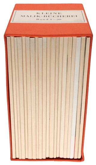 1924-1926: Malik-Bücherei (Faksimileausgabe aller 20 Bände) MALIK-BÜCHEREI. Künstlerische und historische Dokumente der sozialen und kulturellen Kämpfe aller Völker in Vergangenheit und Gegenwart. / 20 Bände, 1924-1926 im Malik-Verlag Berlin von Wieland Herzfelde herausgegeben. – Unveränderter fotomechanischer Neudruck. – Königstein, München: Autoren-Edition 1981. – Kl.8°. Je 48-80 S., teilw. ill. Krt. Mit unveränderten Malik-SU v. George Grosz, John Heartfield u.a.