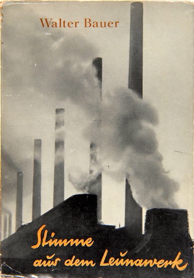 1930: Stimme aus dem Leunawerk Stimme aus dem Leunawerk. Verse und Prosa. / Walter BAUER. – 1.-4. Tsd. – Berlin: Malik-Verlag 1930. – 8°. 157 [3] S. Krt. SU von John Heartfield (rauchende Fabrikkamine). Ref.: Malik 224 (Abb. S. 124). Photobibliothek.ch 911