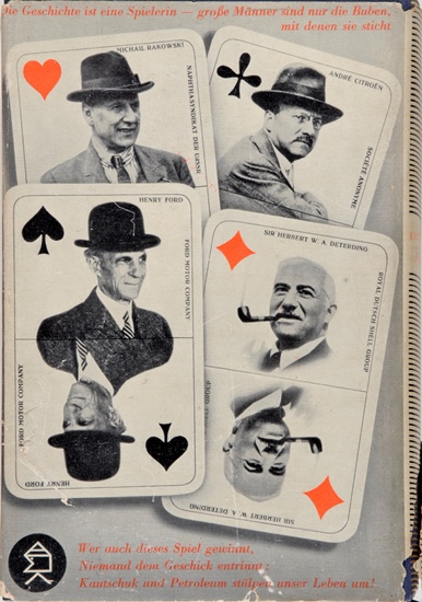 ——— Bücherzettel zum 34.-53. Tausend Petroleum. Das zur Zeit erfolgreichste Buch! 34.-53. Tausend. Bücherzettel. / Upton SINCLAIR. – Berlin: Malik-Verlag o.J. [1927]. – 16°. 4 S. Mit der bekannten Photomontage von John Heartfield. Ref.: Malik 181b (= Buch 34.-53. Tsd.). Photobibliothek.ch 1237