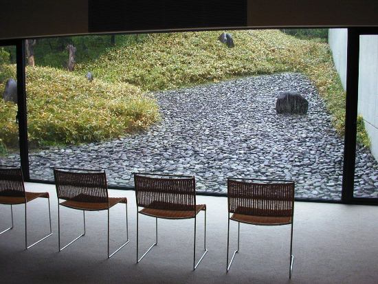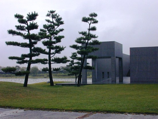 Das Shoji Ueda Museum of Photograpy befindet sich so ziemlich am Ende der Welt. Am lohnendsten ist es wohl, Matsue als Ausgangspunkt zu wählen, welches man mit dem Shinkansen via Okayama erreicht. Matsue war der Wohnort von Lafcadio Hearn, dessen Garten mit den blauen Kieselsteinen (Bild) man unbedingt besuchen sollte.