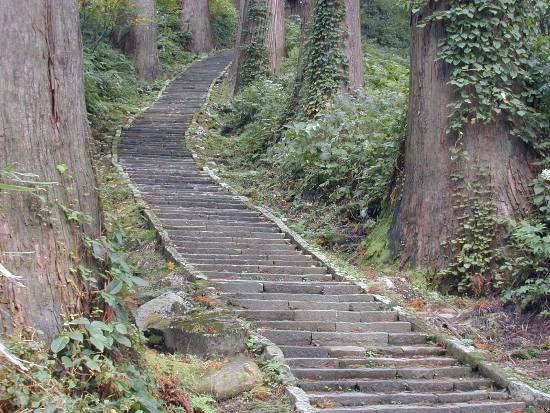 Die unendlich lange Treppe auf den Haguro-san.
