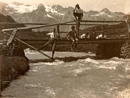 Markt an der Bahnhofstrasse in Zürich 1926: Im Fextal Mit der J[ugend] O[rganisation] der S[e]kt[ion] Thurgau S. A. C. [SCHWEIZER ALPENCLUB] 14 Tage im Fex[tal], Sommer 1926. Privat-Album 13,8 x 22,0 cm mit 48 Gelatine-Silber-Prints 9 x 11,5 cm. – Bilder mit Tinte beschriftet. – 16°quer. Ganzleinenband mit Kordelbindung. Das Fextal (Val Fex) ist ein Seitental des Oberengadins (Gemeinde Sils/Segl). Curtins ist eine der Siedlungen im Fextal. Photobibliothek.ch 16599